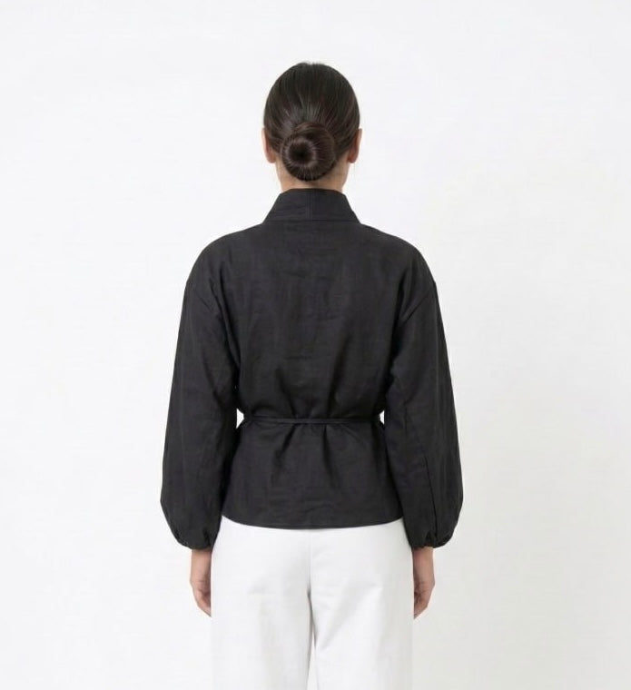 Βαμβακερό Κιμονό-Πουκάμισο Κρουαζέ με Balloon Μανίκια