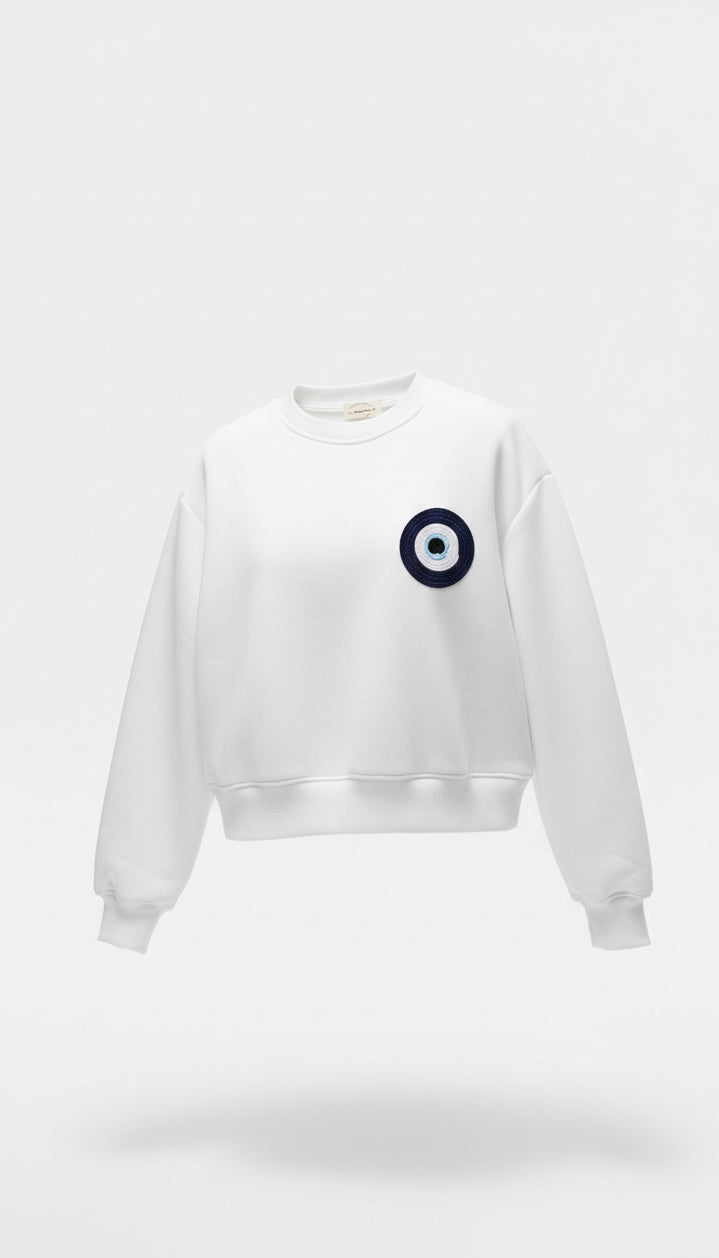 Λευκό Βαμβακερό Φούτερ Μάτι με Χειροποίητο Cord Art