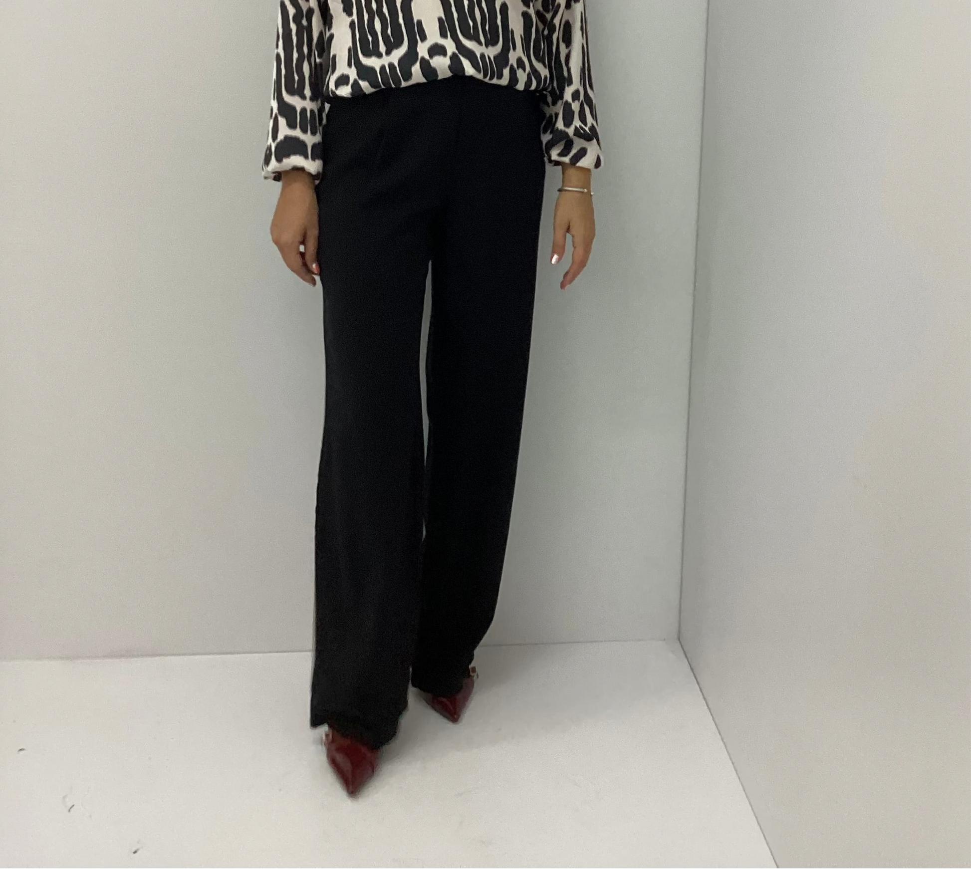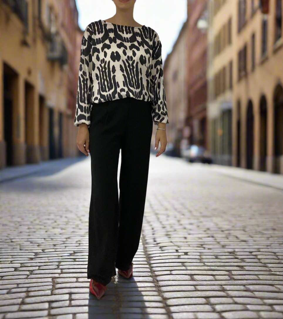 Αυτό το μαύρο παντελόνι είναι ο τέλειος καμβάς για κάθε look. Συνδυάστε το με μια μπλούζα ή πουκάμισο για επαγγελματικές εμφανίσεις στο γραφείο, ή με μια σατέν μπλούζα και αξεσουάρ για βραδινές εξόδους. Η ευελιξία του το καθιστά ιδανικό για casual βόλτες, δείπνα ή ακόμα και πιο επίσημες περιστάσεις. Προσθέστε sneakers για χαλαρό στυλ ή γόβες για μια πιο εκλεπτυσμένη εμφάνιση και δημιουργήστε outfits που κλέβουν τις εντυπώσεις.