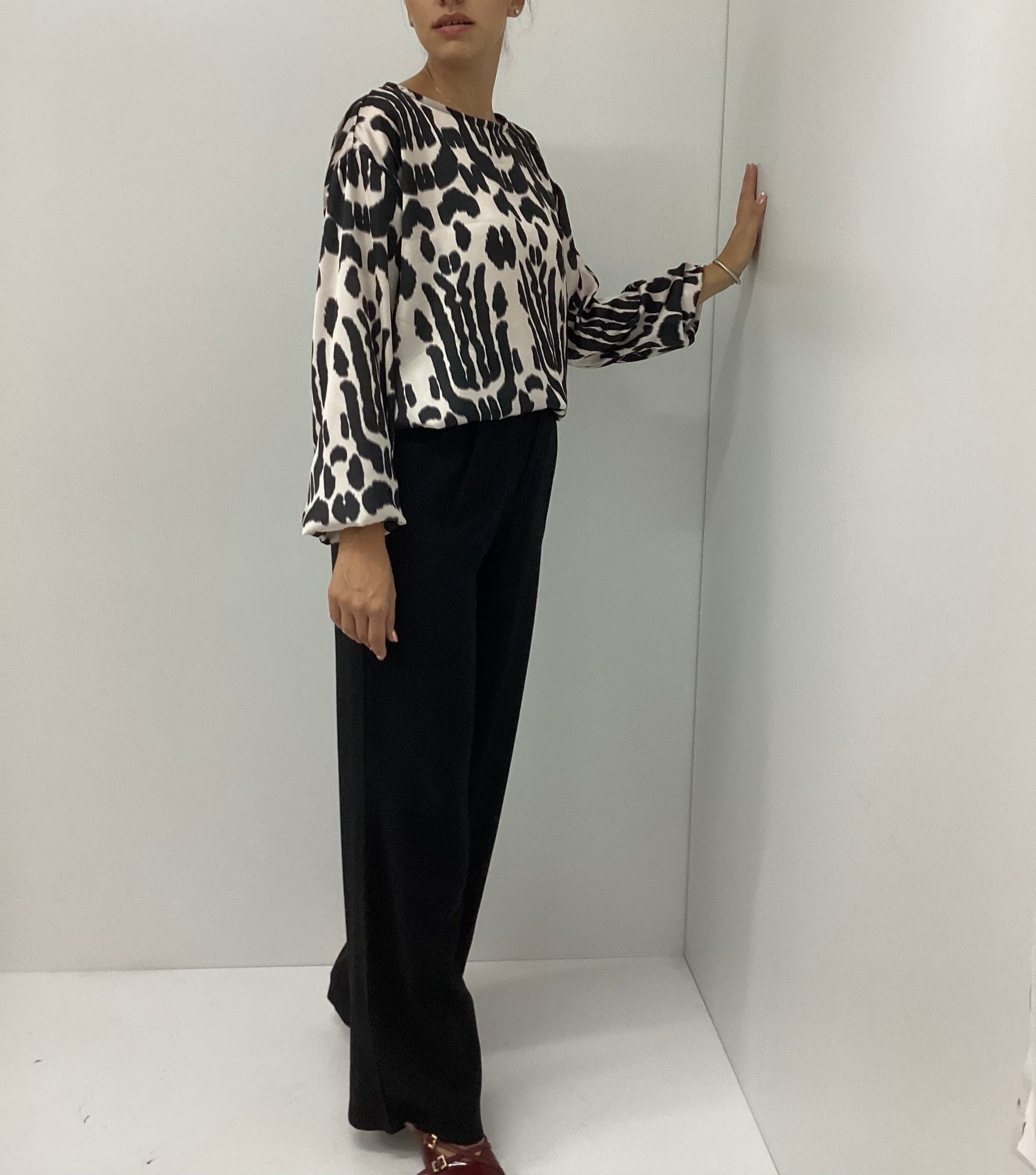 Μπλούζα Aura Σατέν One Size Μπεζ-Μαύρο